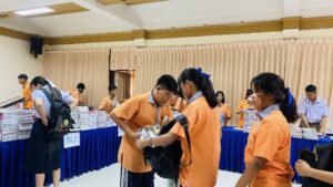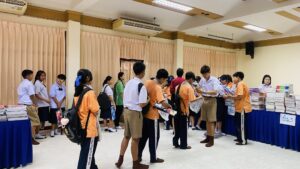 วันที่ 15 พฤษภาคม 2568 โรงเรียนบ้านแก่งชัชวลิตวิทยา นำโดย ดร.จิโรจ จิ๋วแหยม ผู้อำนวยการโรงเรียนฯ และนางสาววรารัตน์ กันเพชร์ รองผู้อำนวยการโรงเรียนฯ มอบหมายให้กลุ่มบริหารงบประมาณ พร้อมด้วยครูที่ปรึกษานักเรียน ดำเนินการแจกหนังสือเรียน สมุด และอุปกรณ์การเรียน ให้แก่นักเรียนชั้นมัธยมศึกษาปีที่ 1-6 เพื่อเตรียมความพร้อมการเปิดภาคเรียนที่ 1 ปีการศึกษา 2568
