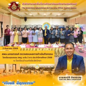 โรงเรียนบ้านแก่งชัชวลิตวิทยา นำโดย ดร.จิโรจ จิ๋วแหยม ผู้อำนวยการโรงเรียนฯ มอบหมายให้นางสาววรารัตน์ กันเพ็ชร์ รองผู้อำนวยการโรงเรียนฯ และคณะครูโรงเรียนบ้านแก่งชัชฯ ร่วมต้อนรับคณะกรรมการ นายสมบัติ ล้อจงเฮง รองผู้อำนวยการสำนักงานเขตพื้นที่การศึกษามัธยมศึกษานครสวรรค์ คณะตรวจสอบผลการดำเนินกิจกรรม โรงเรียนคุณธรรม สพฐ. ระดับ 2 ดาว ประจำปีการศึกษา 2568 พร้อมด้วย นางสาวจิราวรรณ พุ่มต้นวงษ์ ผู้อำนวยการกลุ่มส่งเสริมการศึกษาทางไกลเทคโนโลยีสารสนเทศและการสื่อสาร, นางสาวอมรรัตน์ แก้วมาลา และ นางสาวจันทิมา กุลศรี ศึกษานิเทศก์ชำนาญการพิเศษ