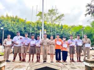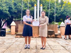 และนางสาววรารัตน์ กันเพ็ชร์ รองผู้อำนวยการโรงเรียนฯ ได้มอบเกียรติบัตรให้กับ นายศราวุธ คงเจริญ, นายคุณานนต์ อินทร์ธนู และ นักเรียนที่ร่วมแข่งขันอีสปอร์ต (ROV) และกีฬาเปตอง ที่ได้รับรางวัลรองชนะเลิศอันดับที่ 2