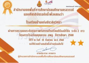 ขอแสดงความยินดี ⭐️⭐️🎉 กับโรงเรียนบ้านแก่งชัชวลิตวิทยา ที่ผ่านการตรวจสอบระดับคุณภาพกิจกรรม “ โรงเรียนดีต้องมีที่ยืนระดับ 2 ดาว ”ในโครงการโรงเรียนคุณธรรม สพฐ. ปีการศึกษา 2568