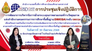 โรงเรียนบ้านแก่งชัชวลิตวิทยา นำโดย ดร.จิโรจ จิ๋วแหยม ผู้อำนวยการโรงเรียนฯ นางสาววรารัตน์ กันเพ็ชร์ รองผู้อำนวยการโรงเรียนฯ พร้อมด้วยคณะครูโรงเรียนบ้านแก่งชัชวลิตวิทยา เข้าร่วมประชุมเชิงปฏิบัติการพัฒนาการบริหารการจัดการด้วยระบบคุณภาพ ตามเกณฑ์รางวัลคุณภาพแห่งสำนักงานคณะกรรมการศึกษาขั้นพื้นฐาน OBECQA ระดับ OBECQA เพื่อเตรียมความพร้อมในการขอรับการประเมิน