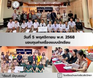 โรงเรียนบ้านแก่งชัชวลิตวิทยา นำโดย ดร.จิโรจ จิ๋วแหยม ผู้อำนวยการโรงเรียนฯ นางสาววรารัตน์ กันเพชร์ รองผู้อำนวยการโรงเรียนฯ  พร้อมด้วยครูที่ปรึกษาในระดับมัธยมศึกษาตอนต้น (ม.1-3)  ได้มอบเงินจำนวน 500 บาท จำนวน 60 คน ในเรื่องค่าเครื่องแบบนักเรียน (เพิ่มเติม) ภาคเรียนที่ 2 ปีการศึกษา 2568  ณ ห้องประชุมเทียนสรรค์ โรงเรียนบ้านแก่งชัชวลิตวิทยา