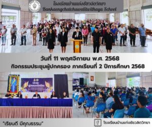 จากนั้นผู้อำนวยการโรงเรียนฯและหัวหน้าฝ่ายทั้ง 4 ฝ่าย ได้ชี้แจงนโยบายที่จะดำเนินงานในภาคเรียนที่ 2 ประจำปีการศึกษา 2568 หลังจากนั้นผู้ปกครองได้เข้าพบกับคุณครูที่ปรึกษา (classroom meeting) เพื่อแจ้งผลการเรียนในภาคเรียนที่ 1/2568 สำหรับตัวแทนผู้ปกครองได้แยกออกมาประชุมเพื่อรับทราบปัญหาและหาแนวทางแก้ไขปัญหาร่วมกัน