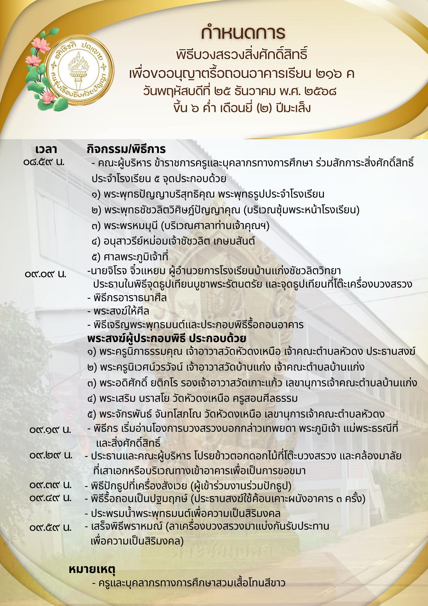มุ่งการเรียน เพียรธรรม นำวิชาการ ประสานสามัคคี